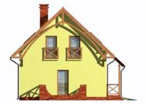 Graficzne opracowanie rzutów poglądowych widocznych na karcie projektu zostało wykonane przez Extradom.pl. Prezentowane przez Extradom.pl wizualizacje wykonane zostały przez autora projektu i należy poczytywać je jedynie za przykład i propozycję wykończenia, wizję architektoniczną autora projektu. Ostateczne wykończenie budynku może nastąpić na wiele sposobów. Szczegółowe rozwiązania zastosowane w oferowanej dokumentacji - w tym również ilość, lokalizacje i wygląd okien, drzwi, kominów - mogą w niewielkim stopniu różnić się od prezentowanej wizualizacji budynku.