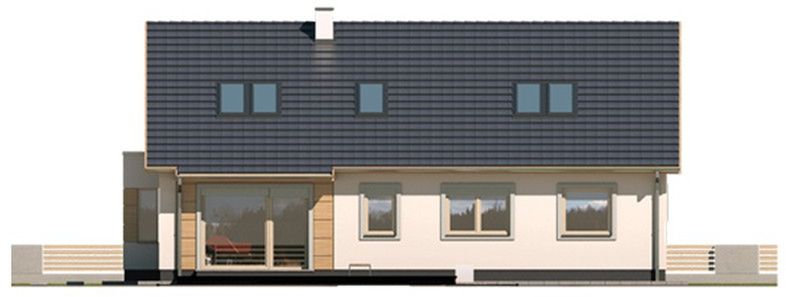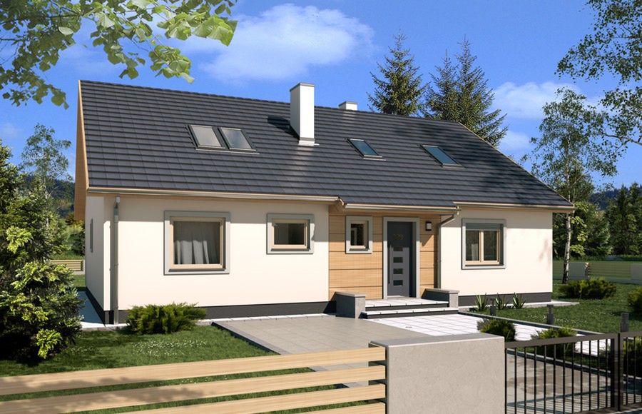 Graficzne opracowanie rzutów poglądowych widocznych na karcie projektu zostało wykonane przez Extradom.pl. Prezentowane przez Extradom.pl wizualizacje wykonane zostały przez autora projektu i należy poczytywać je jedynie za przykład i propozycję wykończenia, wizję architektoniczną autora projektu. Ostateczne wykończenie budynku może nastąpić na wiele sposobów. Szczegółowe rozwiązania zastosowane w oferowanej dokumentacji - w tym również ilość, lokalizacje i wygląd okien, drzwi, kominów - mogą w niewielkim stopniu różnić się od prezentowanej wizualizacji budynku.