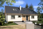 Graficzne opracowanie rzutów poglądowych widocznych na karcie projektu zostało wykonane przez Extradom.pl. Prezentowane przez Extradom.pl wizualizacje wykonane zostały przez autora projektu i należy poczytywać je jedynie za przykład i propozycję wykończenia, wizję architektoniczną autora projektu. Ostateczne wykończenie budynku może nastąpić na wiele sposobów. Szczegółowe rozwiązania zastosowane w oferowanej dokumentacji - w tym również ilość, lokalizacje i wygląd okien, drzwi, kominów - mogą w niewielkim stopniu różnić się od prezentowanej wizualizacji budynku.