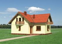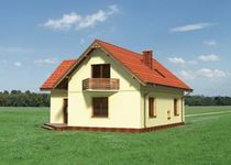 Graficzne opracowanie rzutów poglądowych widocznych na karcie projektu zostało wykonane przez Extradom.pl. Prezentowane przez Extradom.pl wizualizacje wykonane zostały przez autora projektu i należy poczytywać je jedynie za przykład i propozycję wykończenia, wizję architektoniczną autora projektu. Ostateczne wykończenie budynku może nastąpić na wiele sposobów. Szczegółowe rozwiązania zastosowane w oferowanej dokumentacji - w tym również ilość, lokalizacje i wygląd okien, drzwi, kominów - mogą w niewielkim stopniu różnić się od prezentowanej wizualizacji budynku.