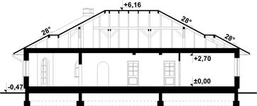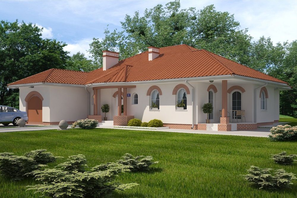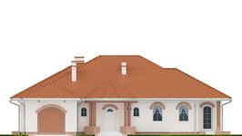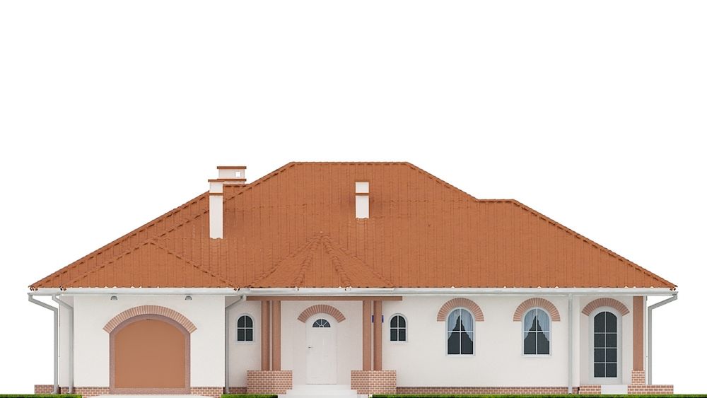 Graficzne opracowanie rzutów poglądowych widocznych na karcie projektu zostało wykonane przez Extradom.pl. Prezentowane przez Extradom.pl wizualizacje wykonane zostały przez autora projektu i należy poczytywać je jedynie za przykład i propozycję wykończenia, wizję architektoniczną autora projektu. Ostateczne wykończenie budynku może nastąpić na wiele sposobów. Szczegółowe rozwiązania zastosowane w oferowanej dokumentacji - w tym również ilość, lokalizacje i wygląd okien, drzwi, kominów - mogą w niewielkim stopniu różnić się od prezentowanej wizualizacji budynku.