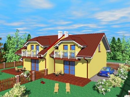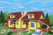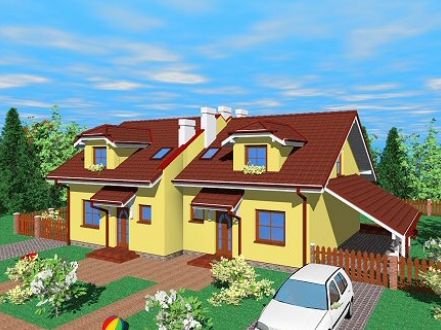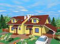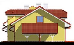 Graficzne opracowanie rzutów poglądowych widocznych na karcie projektu zostało wykonane przez Extradom.pl. Prezentowane przez Extradom.pl wizualizacje wykonane zostały przez autora projektu i należy poczytywać je jedynie za przykład i propozycję wykończenia, wizję architektoniczną autora projektu. Ostateczne wykończenie budynku może nastąpić na wiele sposobów. Szczegółowe rozwiązania zastosowane w oferowanej dokumentacji - w tym również ilość, lokalizacje i wygląd okien, drzwi, kominów - mogą w niewielkim stopniu różnić się od prezentowanej wizualizacji budynku.