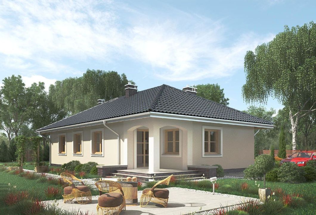 Uważam, że do poszukiwań projektu przyszłego domu należy podejść przede wszystkim praktycznie i z rozsądkiem. Priorytetem powinny być więc możliwości Inwestorów, szczególnie te dotyczące finansów oraz późniejszego utrzymania domu. Często zdarza się jednak, iż wybierają oni projekt głównie ze względów wizualnych, gdyż budynek jest duży i okazale się prezentuje. Niestety później okazuje się, że rachunki w takim domu są bardzo duże, a utrzymanie czystości na tak sporym metrażu staje się uciążliwe. Postanowiłem więc nie przeceniać naszych możliwości i od początku szukałem projektu budynku o prostej konstrukcji i umiarkowanej powierzchni - takie rozwiązania sprawiają, że jego realizacja jest łatwa i nie pochłania wielu środków finansowych. Spośród propozycji spełniających powyższe kryteria, wybrałem projekt domu Kira - murowana – beton komórkowy KRD1984, którego wnętrze bardzo przypadło mi do gustu.Nasza budowa przebiegła sprawnie i bez problemów, a fachowcy nie zgłaszali błędów w dokumentacji technicznej. Do wymurowania ścian użyliśmy bloczków Suporex, a dach pokryliśmy blachodachówką. Zmieniliśmy zalecaną metodę wykonania stropu i zamiast monolitycznego, zastosowaliśmy system Teriva. Zdecydowałem się na budowę systemem gospodarczym finansowaną z własnych środków, dlatego też czas wykonania nieco się przeciągnął, ale na szczęście nie musiałem śpieszyć się z realizacją. Od rozpoczęcia pierwszych prac do chwili obecnej minęły 2 lata, a do całkowitego zakończenia inwestycji zostały nam już tylko ostatnie wykończenia.Do projektu domu parterowego Kira - murowana – beton komórkowy KRD1984 wprowadziliśmy pewne zmiany. Zrezygnowaliśmy z wnęki przewidzianej na taras, a jej powierzchnię przyłączyliśmy do salonu. Dzięki temu stał się on większy o ok. 6 m² i tym samym wiele zyskał na przestronności. Muszę przyznać, że był to naprawdę dobry pomysł i szczerze polecam go innym Inwestorom. Ze względu na wcześniej wspomnianą modyfikację, postanowiłem powiększyć metraż tarasu, który ponadto został w naszym przypadku odpowiednio zadaszony za sprawą wydłużenia połaci dachowej.Niezależnie od projektu, patrząc na rzuty po prostu czasem nie da się przewidzieć jak pokoje będą wyglądały w rzeczywistości. Okazało się, że narożny pokój jest nieco za wąski, więc myślę że na chwilę obecną z pewnością wydłużyłbym dom o ok. 0,5-0,7 m z każdej strony. Takie rozwiązanie sprawiłoby, iż sypialnia stałaby się w pełni ustawna, a pozostałe pomieszczenia zyskałyby na przestronności. Uważam, więc że warto rozważyć to na etapie adaptacji.Oprócz powyższej obiekcji nie mam innych zastrzeżeń do projektu domu Kira - murowana – beton komórkowy KRD1984. Przewidziany w nim układ pomieszczeń jest funkcjonalny i wygodny w komunikacji. Budynek usytuowany jest w ten sposób, iż przeszklenie w kuchni wychodzi na wschód, zaś te w salonie - na zachód. Przy takim ułożeniu we wszystkich pomieszczeniach jest wystarczająco jasno. Pozdrawiam.