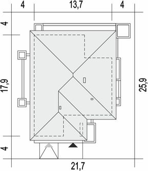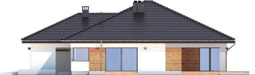 Graficzne opracowanie rzutów poglądowych widocznych na karcie projektu zostało wykonane przez Extradom.pl. Prezentowane przez Extradom.pl wizualizacje wykonane zostały przez autora projektu i należy poczytywać je jedynie za przykład i propozycję wykończenia, wizję architektoniczną autora projektu. Ostateczne wykończenie budynku może nastąpić na wiele sposobów. Szczegółowe rozwiązania zastosowane w oferowanej dokumentacji - w tym również ilość, lokalizacje i wygląd okien, drzwi, kominów - mogą w niewielkim stopniu różnić się od prezentowanej wizualizacji budynku.