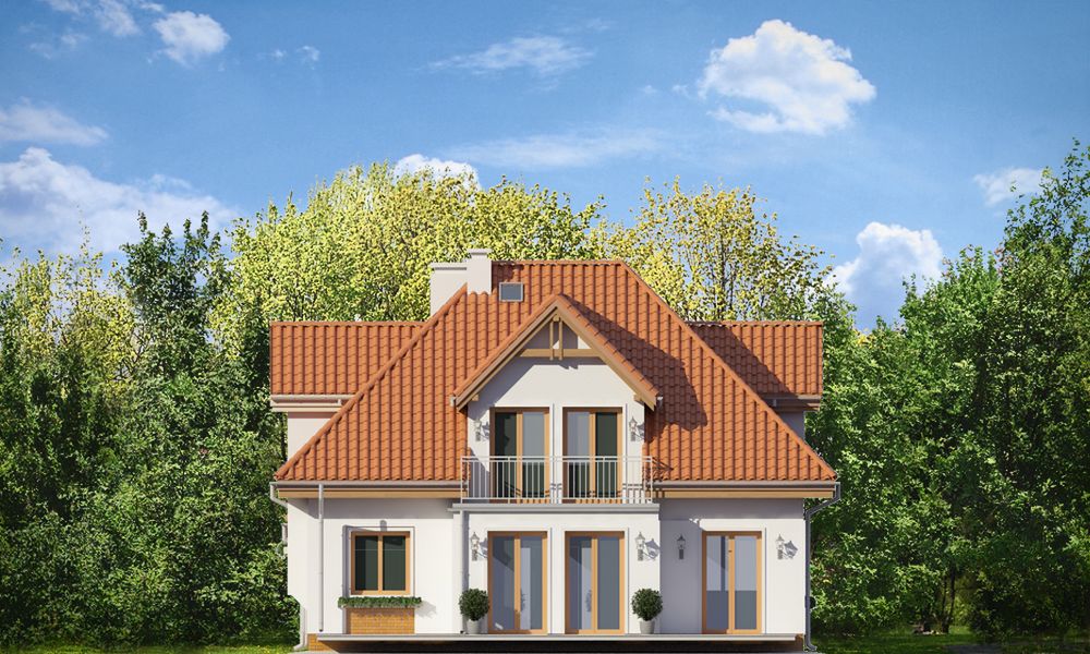 Graficzne opracowanie rzutów poglądowych widocznych na karcie projektu zostało wykonane przez Extradom.pl. Prezentowane przez Extradom.pl wizualizacje wykonane zostały przez autora projektu i należy poczytywać je jedynie za przykład i propozycję wykończenia, wizję architektoniczną autora projektu. Ostateczne wykończenie budynku może nastąpić na wiele sposobów. Szczegółowe rozwiązania zastosowane w oferowanej dokumentacji - w tym również ilość, lokalizacje i wygląd okien, drzwi, kominów - mogą w niewielkim stopniu różnić się od prezentowanej wizualizacji budynku.