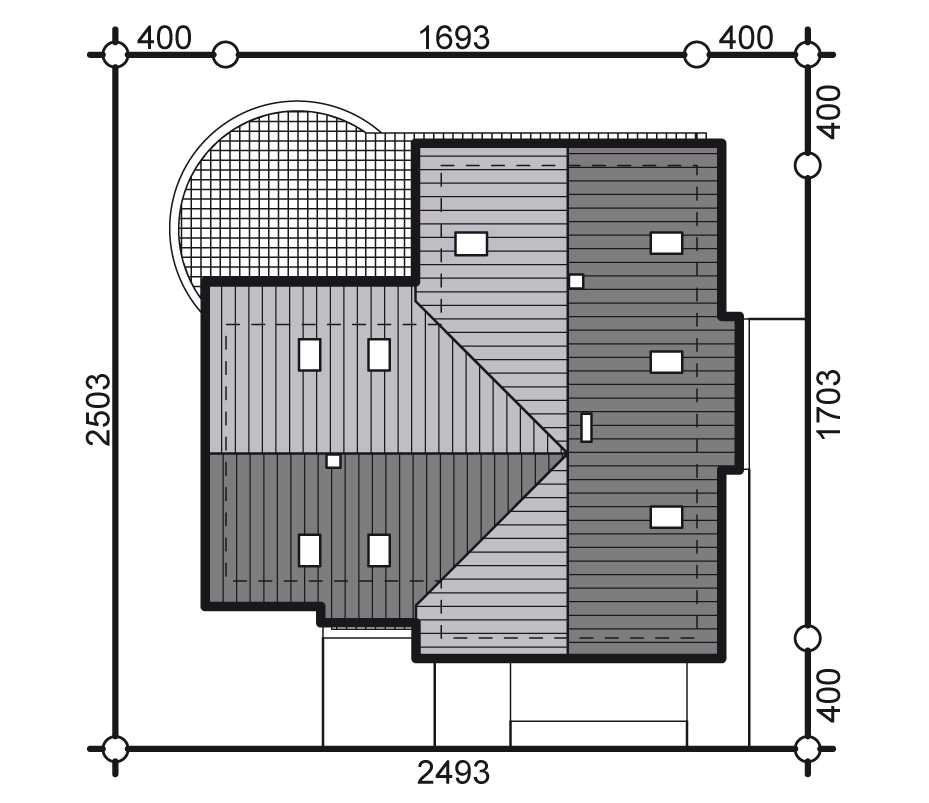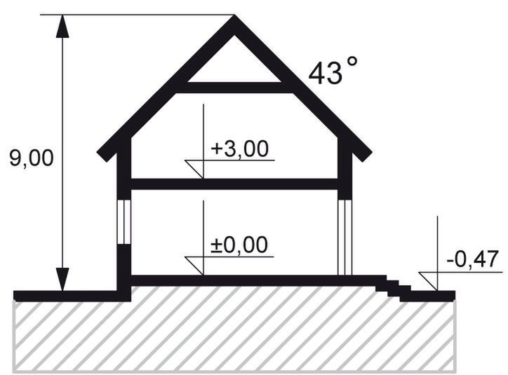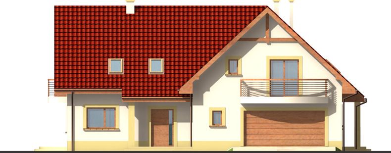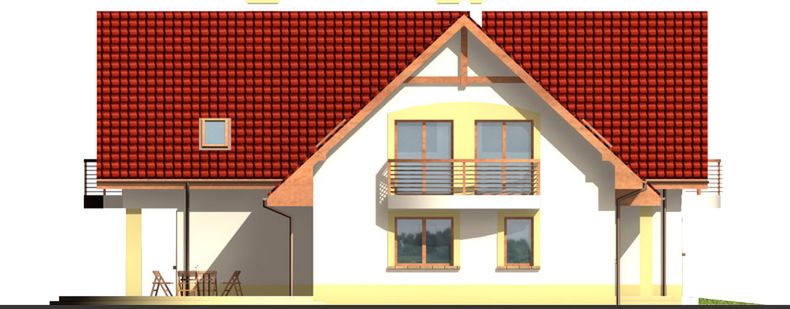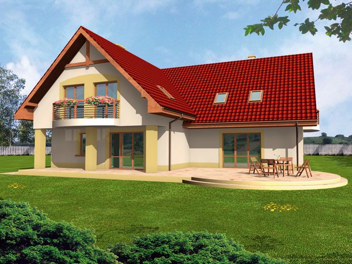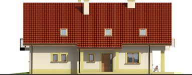 Graficzne opracowanie rzutów poglądowych widocznych na karcie projektu zostało wykonane przez Extradom.pl. Prezentowane przez Extradom.pl wizualizacje wykonane zostały przez autora projektu i należy poczytywać je jedynie za przykład i propozycję wykończenia, wizję architektoniczną autora projektu. Ostateczne wykończenie budynku może nastąpić na wiele sposobów. Szczegółowe rozwiązania zastosowane w oferowanej dokumentacji - w tym również ilość, lokalizacje i wygląd okien, drzwi, kominów - mogą w niewielkim stopniu różnić się od prezentowanej wizualizacji budynku.