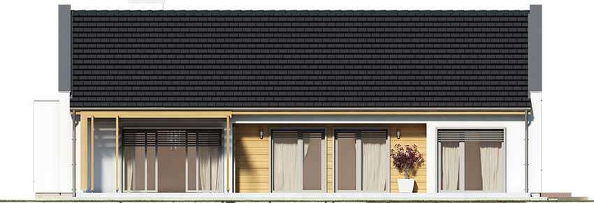 Graficzne opracowanie rzutów poglądowych widocznych na karcie projektu zostało wykonane przez Extradom.pl. Prezentowane przez Extradom.pl wizualizacje wykonane zostały przez autora projektu i należy poczytywać je jedynie za przykład i propozycję wykończenia, wizję architektoniczną autora projektu. Ostateczne wykończenie budynku może nastąpić na wiele sposobów. Szczegółowe rozwiązania zastosowane w oferowanej dokumentacji - w tym również ilość, lokalizacje i wygląd okien, drzwi, kominów - mogą w niewielkim stopniu różnić się od prezentowanej wizualizacji budynku.