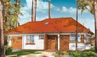 Graficzne opracowanie rzutów poglądowych widocznych na karcie projektu zostało wykonane przez Extradom.pl. Prezentowane przez Extradom.pl wizualizacje wykonane zostały przez autora projektu i należy poczytywać je jedynie za przykład i propozycję wykończenia, wizję architektoniczną autora projektu. Ostateczne wykończenie budynku może nastąpić na wiele sposobów. Szczegółowe rozwiązania zastosowane w oferowanej dokumentacji - w tym również ilość, lokalizacje i wygląd okien, drzwi, kominów - mogą w niewielkim stopniu różnić się od prezentowanej wizualizacji budynku.