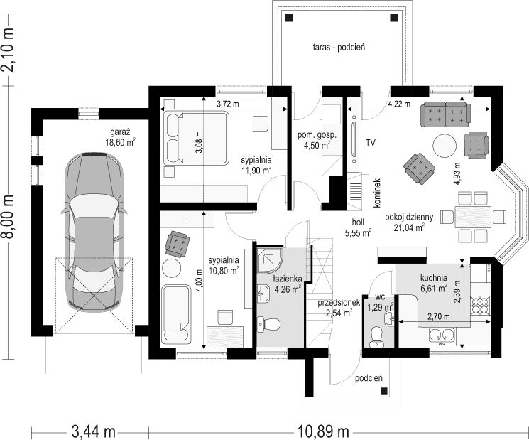 PROJEKT Z BUDOWĄ Istnieje możliwość zaadaptowania tego projektu do technologii prefabrykowanej/modułowej i budowy nawet w 6 miesięcy ze stałym kosztem budowy