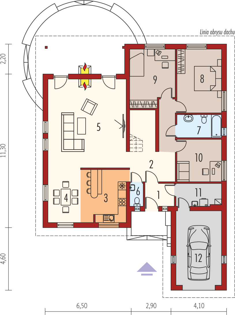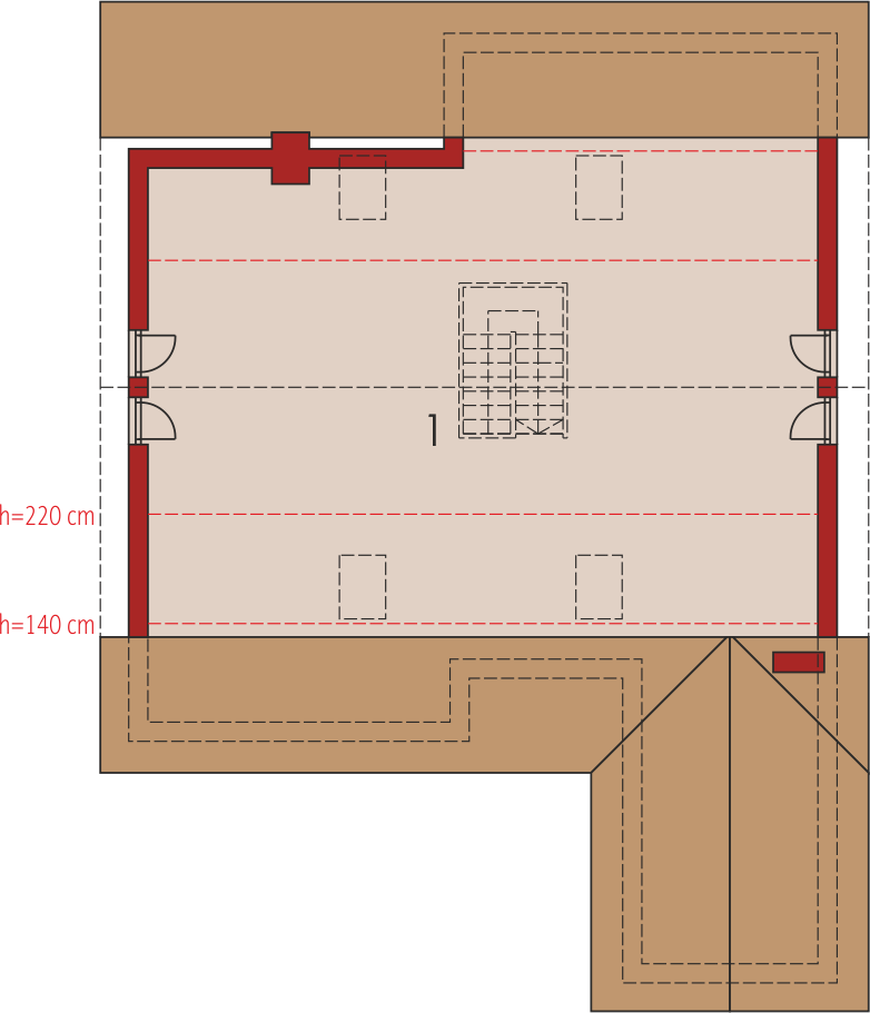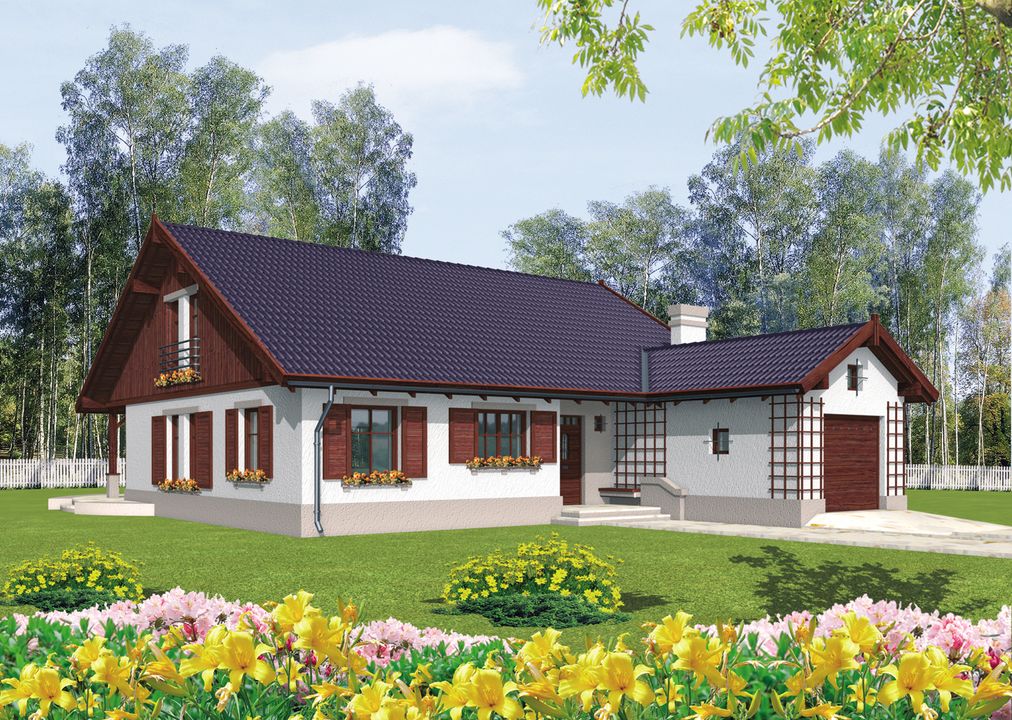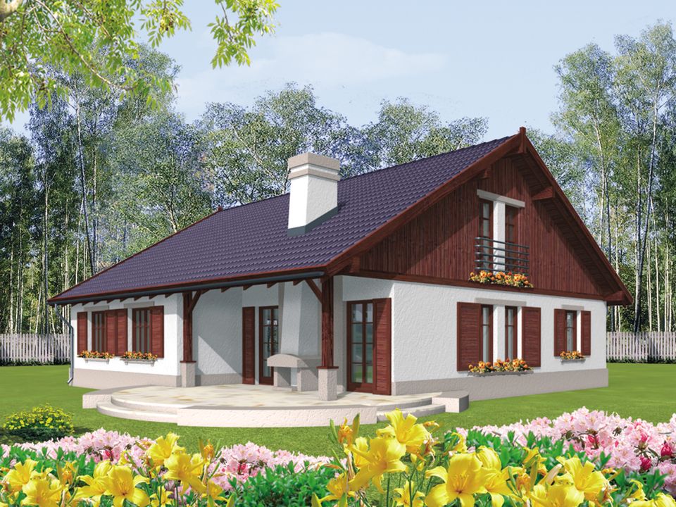 Graficzne opracowanie rzutów poglądowych widocznych na karcie projektu zostało wykonane przez Extradom.pl. Prezentowane przez Extradom.pl wizualizacje wykonane zostały przez autora projektu i należy poczytywać je jedynie za przykład i propozycję wykończenia, wizję architektoniczną autora projektu. Ostateczne wykończenie budynku może nastąpić na wiele sposobów. Szczegółowe rozwiązania zastosowane w oferowanej dokumentacji - w tym również ilość, lokalizacje i wygląd okien, drzwi, kominów - mogą w niewielkim stopniu różnić się od prezentowanej wizualizacji budynku.