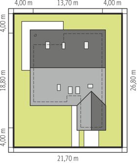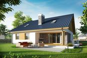 Graficzne opracowanie rzutów poglądowych widocznych na karcie projektu zostało wykonane przez Extradom.pl. Prezentowane przez Extradom.pl wizualizacje wykonane zostały przez autora projektu i należy poczytywać je jedynie za przykład i propozycję wykończenia, wizję architektoniczną autora projektu. Ostateczne wykończenie budynku może nastąpić na wiele sposobów. Szczegółowe rozwiązania zastosowane w oferowanej dokumentacji - w tym również ilość, lokalizacje i wygląd okien, drzwi, kominów - mogą w niewielkim stopniu różnić się od prezentowanej wizualizacji budynku.