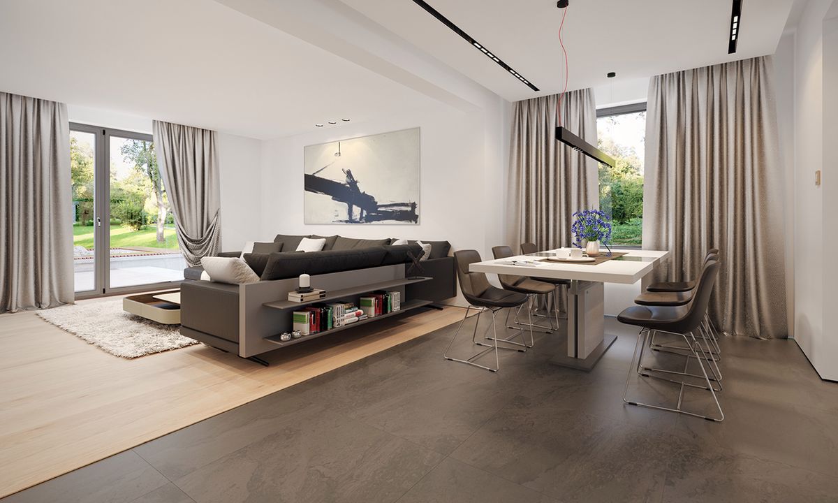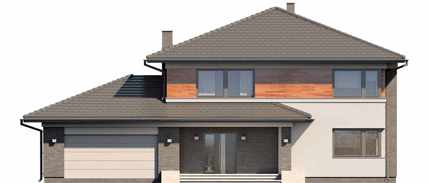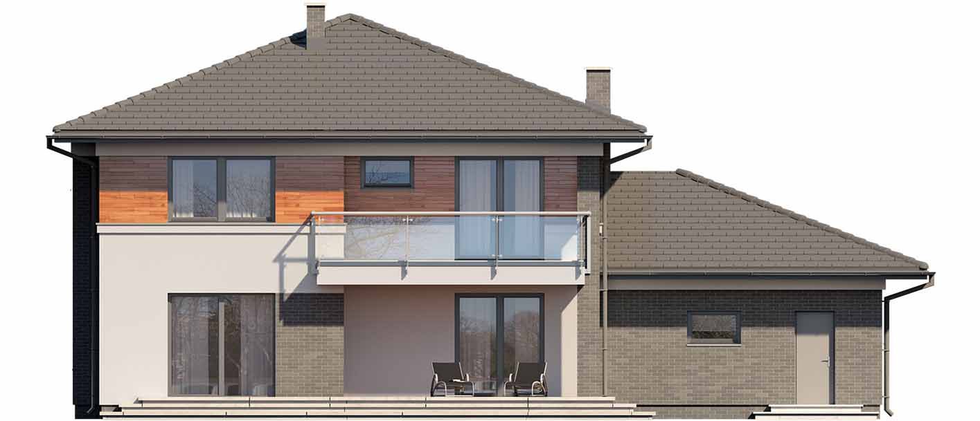 Graficzne opracowanie rzutów poglądowych widocznych na karcie projektu zostało wykonane przez Extradom.pl. Prezentowane przez Extradom.pl wizualizacje wykonane zostały przez autora projektu i należy poczytywać je jedynie za przykład i propozycję wykończenia, wizję architektoniczną autora projektu. Ostateczne wykończenie budynku może nastąpić na wiele sposobów. Szczegółowe rozwiązania zastosowane w oferowanej dokumentacji - w tym również ilość, lokalizacje i wygląd okien, drzwi, kominów - mogą w niewielkim stopniu różnić się od prezentowanej wizualizacji budynku.