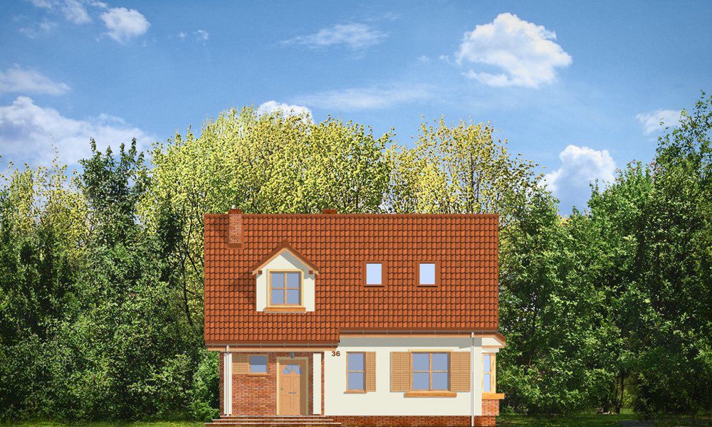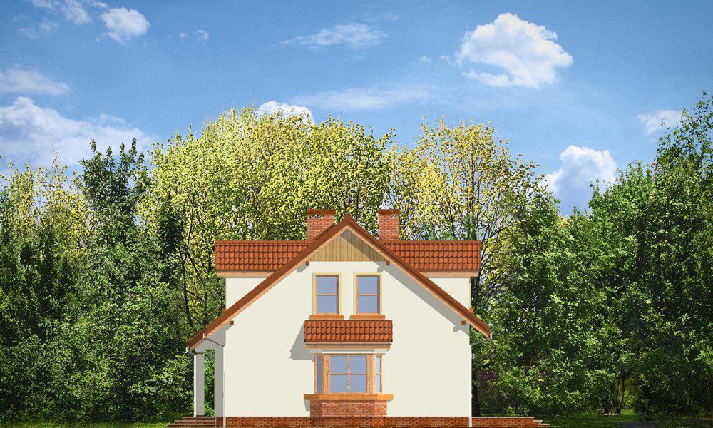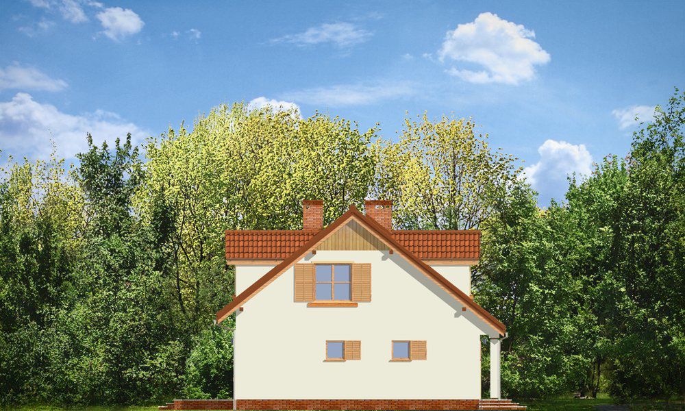 Graficzne opracowanie rzutów poglądowych widocznych na karcie projektu zostało wykonane przez Extradom.pl. Prezentowane przez Extradom.pl wizualizacje wykonane zostały przez autora projektu i należy poczytywać je jedynie za przykład i propozycję wykończenia, wizję architektoniczną autora projektu. Ostateczne wykończenie budynku może nastąpić na wiele sposobów. Szczegółowe rozwiązania zastosowane w oferowanej dokumentacji - w tym również ilość, lokalizacje i wygląd okien, drzwi, kominów - mogą w niewielkim stopniu różnić się od prezentowanej wizualizacji budynku.