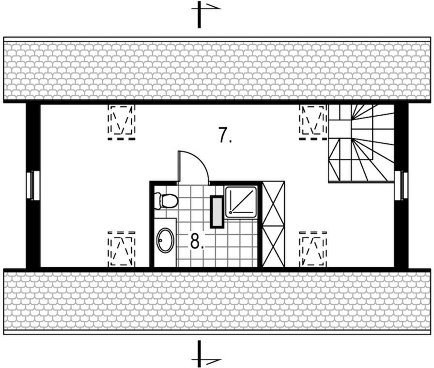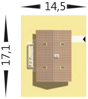 Graficzne opracowanie rzutów poglądowych widocznych na karcie projektu zostało wykonane przez Extradom.pl. Prezentowane przez Extradom.pl wizualizacje wykonane zostały przez autora projektu i należy poczytywać je jedynie za przykład i propozycję wykończenia, wizję architektoniczną autora projektu. Ostateczne wykończenie budynku może nastąpić na wiele sposobów. Szczegółowe rozwiązania zastosowane w oferowanej dokumentacji - w tym również ilość, lokalizacje i wygląd okien, drzwi, kominów - mogą w niewielkim stopniu różnić się od prezentowanej wizualizacji budynku.