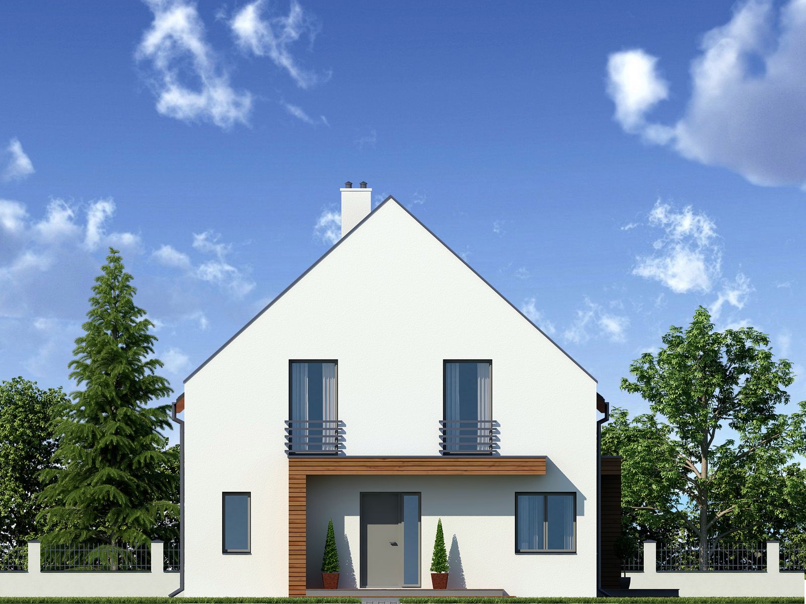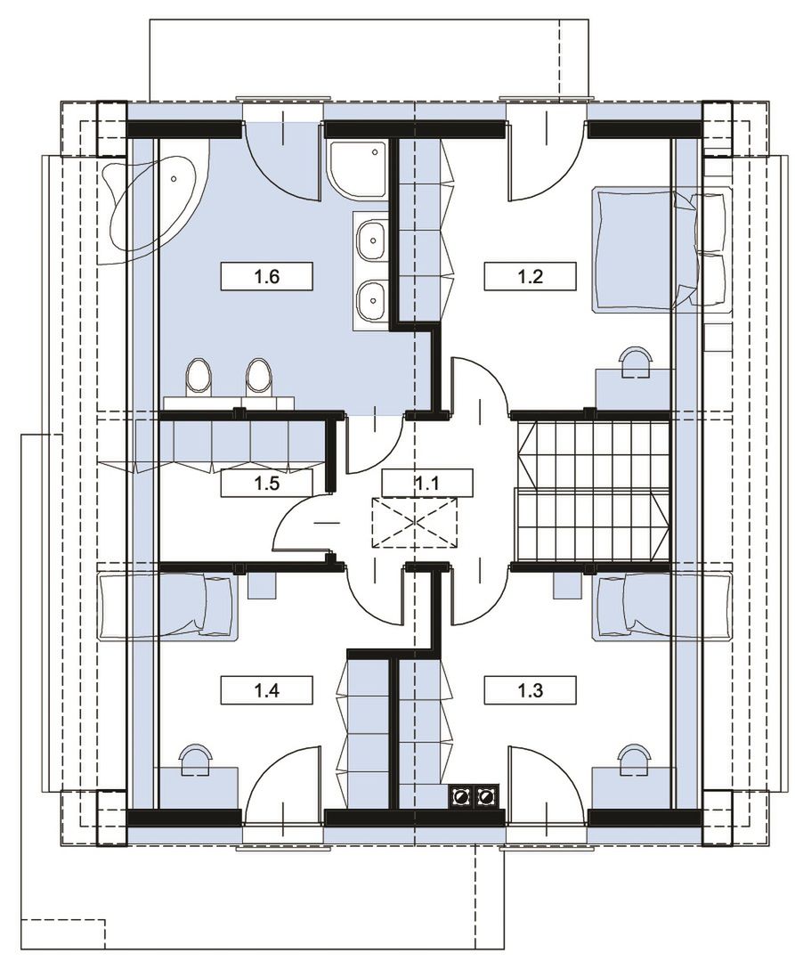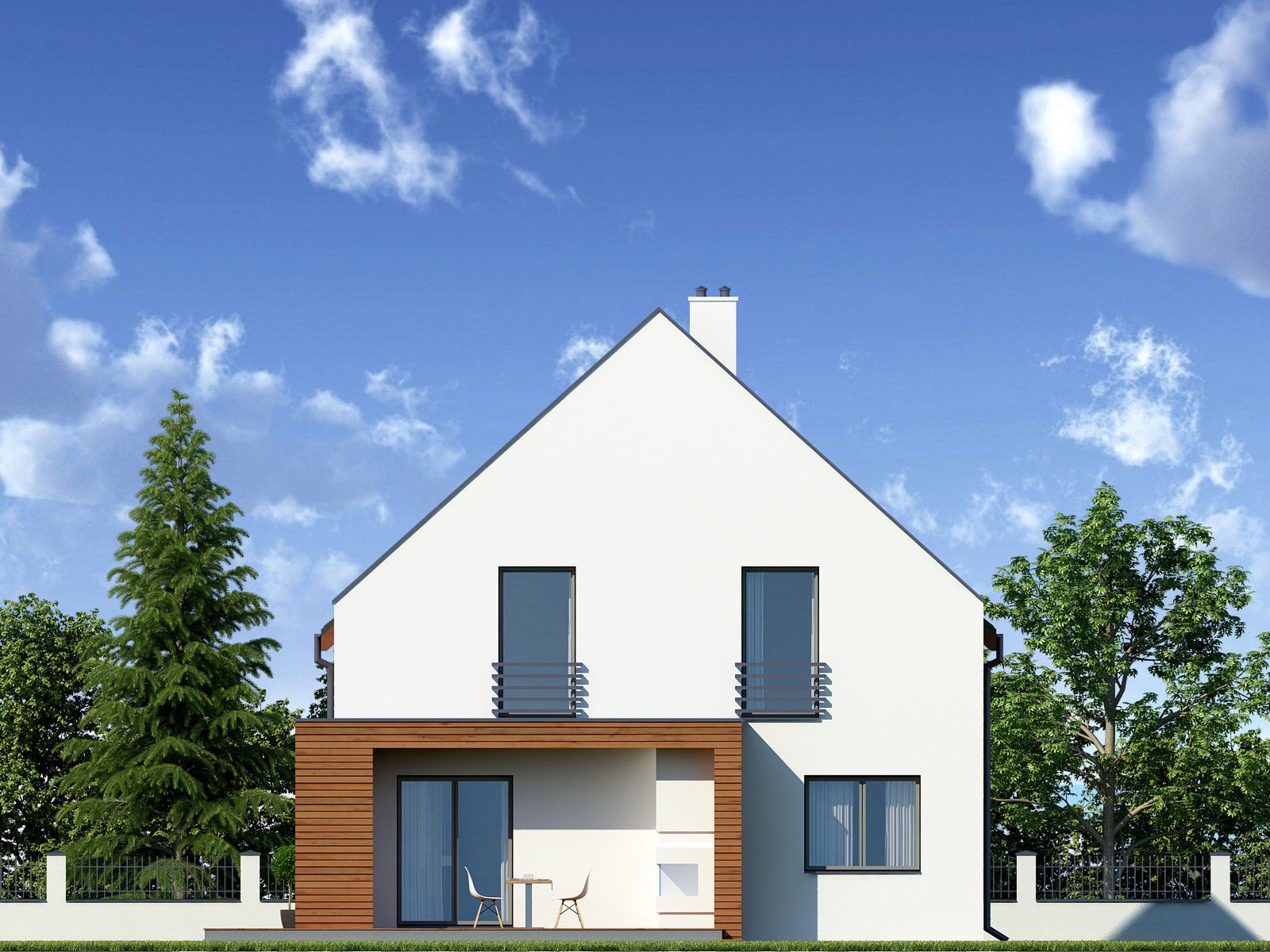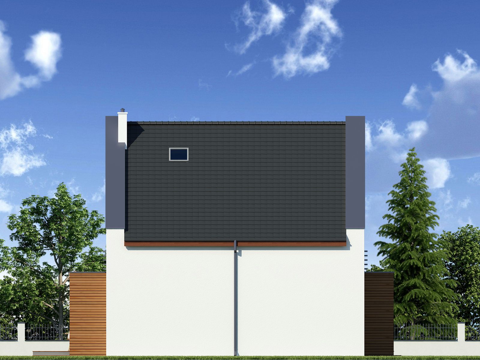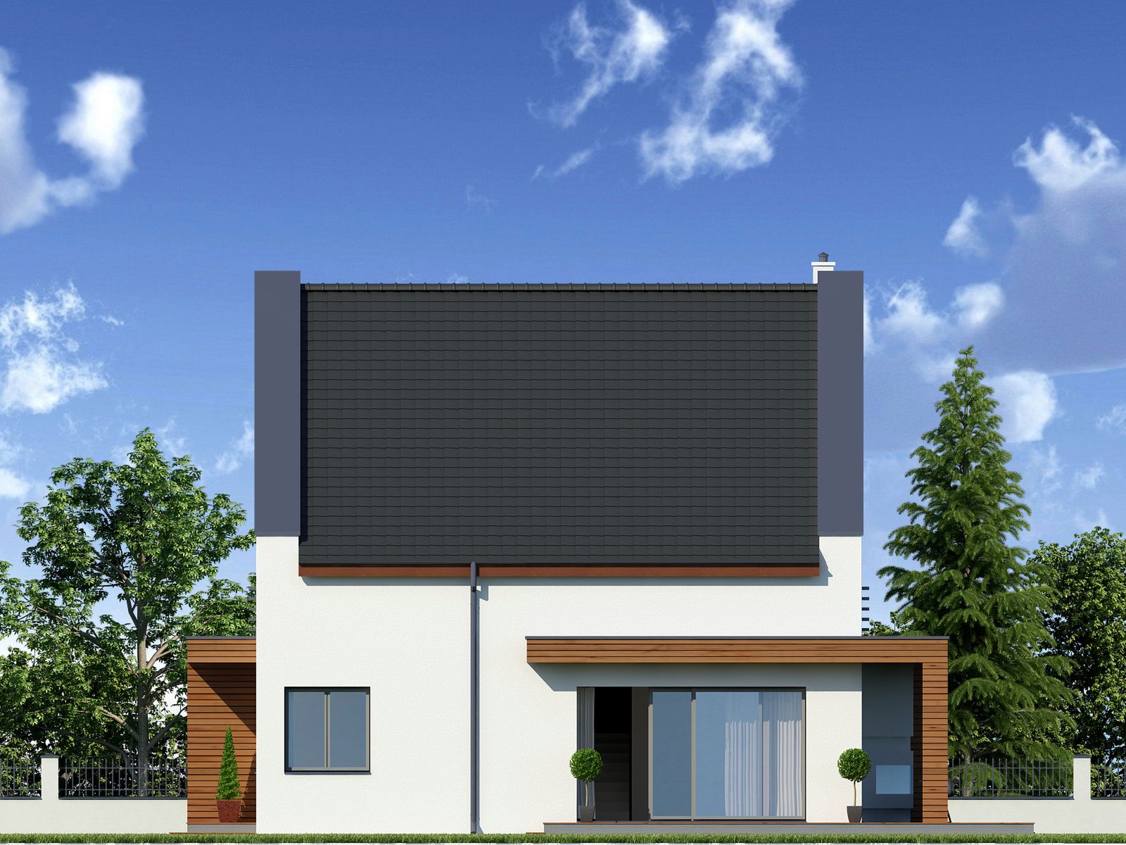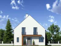 Graficzne opracowanie rzutów poglądowych widocznych na karcie projektu zostało wykonane przez Extradom.pl. Prezentowane przez Extradom.pl wizualizacje wykonane zostały przez autora projektu i należy poczytywać je jedynie za przykład i propozycję wykończenia, wizję architektoniczną autora projektu. Ostateczne wykończenie budynku może nastąpić na wiele sposobów. Szczegółowe rozwiązania zastosowane w oferowanej dokumentacji - w tym również ilość, lokalizacje i wygląd okien, drzwi, kominów - mogą w niewielkim stopniu różnić się od prezentowanej wizualizacji budynku.