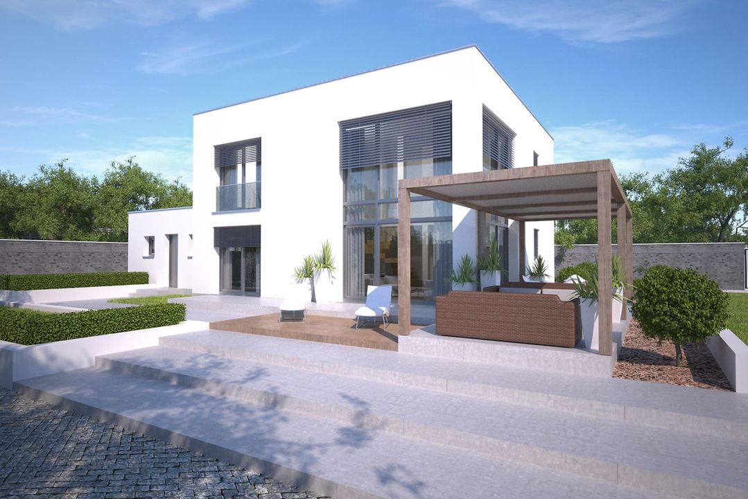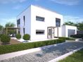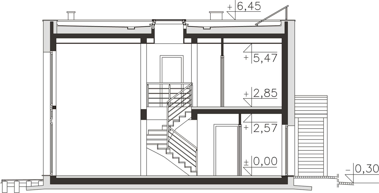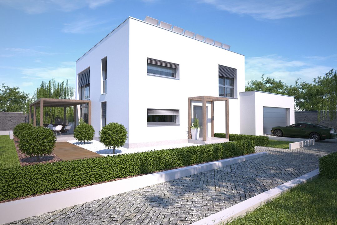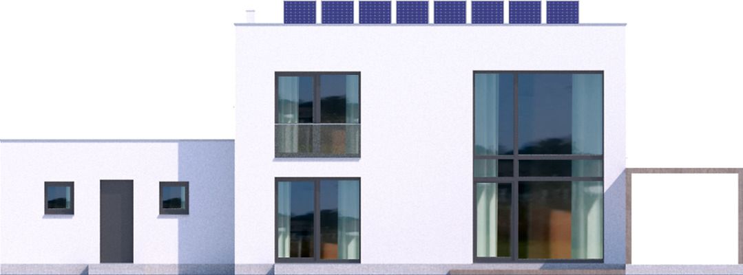 Fundamenty - płyta fundamentowa. Ściany zewnętrzne - Bloczek silikatowy 24 cm + wełna mineralna 25 cm. Strop - gęstożebrowy. Dach - stropodach żelbetowy. Ogrzewanie - c.o. podłogowe + c.w.u. - pompa ciepła ze źródłem dolnym. Wentylacja - rekuperacja.