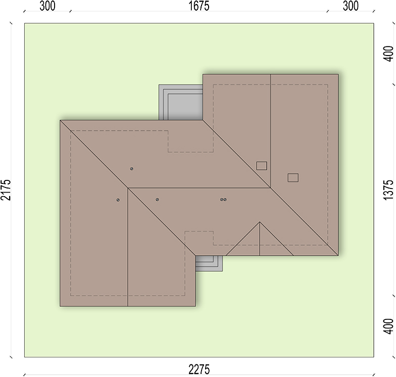 Graficzne opracowanie rzutów poglądowych widocznych na karcie projektu zostało wykonane przez Extradom.pl. Prezentowane przez Extradom.pl wizualizacje wykonane zostały przez autora projektu i należy poczytywać je jedynie za przykład i propozycję wykończenia, wizję architektoniczną autora projektu. Ostateczne wykończenie budynku może nastąpić na wiele sposobów. Szczegółowe rozwiązania zastosowane w oferowanej dokumentacji - w tym również ilość, lokalizacje i wygląd okien, drzwi, kominów - mogą w niewielkim stopniu różnić się od prezentowanej wizualizacji budynku.