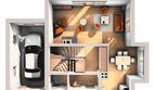 Graficzne opracowanie rzutów poglądowych widocznych na karcie projektu zostało wykonane przez Extradom.pl. Prezentowane przez Extradom.pl wizualizacje wykonane zostały przez autora projektu i należy poczytywać je jedynie za przykład i propozycję wykończenia, wizję architektoniczną autora projektu. Ostateczne wykończenie budynku może nastąpić na wiele sposobów. Szczegółowe rozwiązania zastosowane w oferowanej dokumentacji - w tym również ilość, lokalizacje i wygląd okien, drzwi, kominów - mogą w niewielkim stopniu różnić się od prezentowanej wizualizacji budynku.