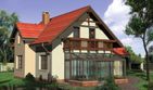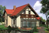 Graficzne opracowanie rzutów poglądowych widocznych na karcie projektu zostało wykonane przez Extradom.pl. Prezentowane przez Extradom.pl wizualizacje wykonane zostały przez autora projektu i należy poczytywać je jedynie za przykład i propozycję wykończenia, wizję architektoniczną autora projektu. Ostateczne wykończenie budynku może nastąpić na wiele sposobów. Szczegółowe rozwiązania zastosowane w oferowanej dokumentacji - w tym również ilość, lokalizacje i wygląd okien, drzwi, kominów - mogą w niewielkim stopniu różnić się od prezentowanej wizualizacji budynku.