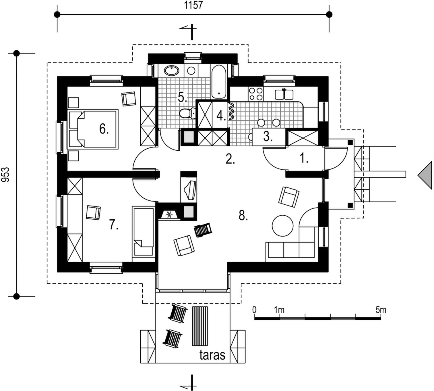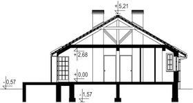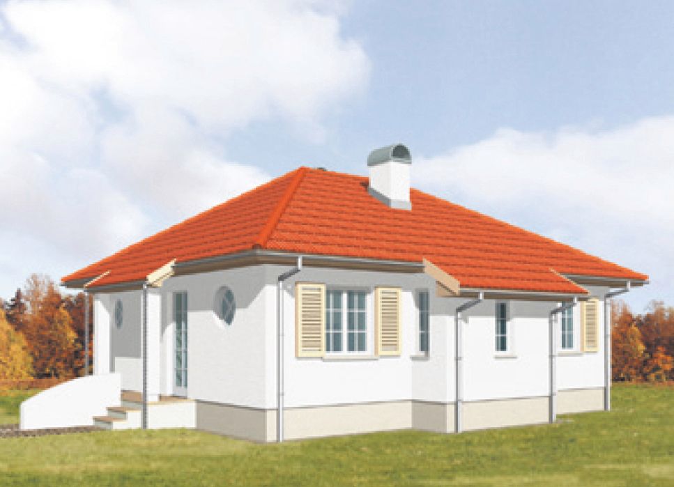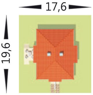 Graficzne opracowanie rzutów poglądowych widocznych na karcie projektu zostało wykonane przez Extradom.pl. Prezentowane przez Extradom.pl wizualizacje wykonane zostały przez autora projektu i należy poczytywać je jedynie za przykład i propozycję wykończenia, wizję architektoniczną autora projektu. Ostateczne wykończenie budynku może nastąpić na wiele sposobów. Szczegółowe rozwiązania zastosowane w oferowanej dokumentacji - w tym również ilość, lokalizacje i wygląd okien, drzwi, kominów - mogą w niewielkim stopniu różnić się od prezentowanej wizualizacji budynku.