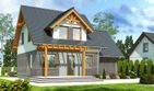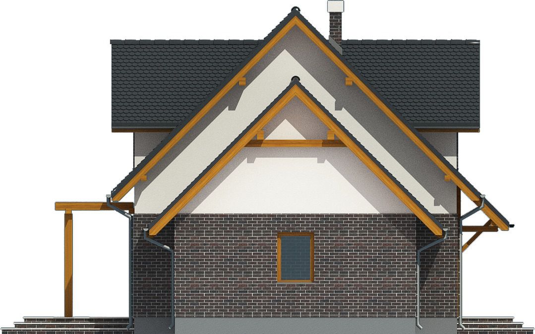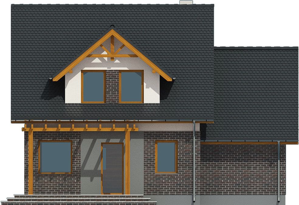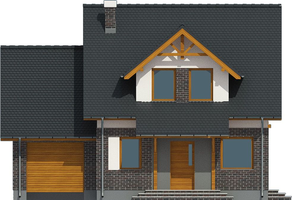 Graficzne opracowanie rzutów poglądowych widocznych na karcie projektu zostało wykonane przez Extradom.pl. Prezentowane przez Extradom.pl wizualizacje wykonane zostały przez autora projektu i należy poczytywać je jedynie za przykład i propozycję wykończenia, wizję architektoniczną autora projektu. Ostateczne wykończenie budynku może nastąpić na wiele sposobów. Szczegółowe rozwiązania zastosowane w oferowanej dokumentacji - w tym również ilość, lokalizacje i wygląd okien, drzwi, kominów - mogą w niewielkim stopniu różnić się od prezentowanej wizualizacji budynku.