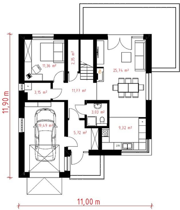 PROJEKT Z BUDOWĄ Istnieje możliwość zaadaptowania tego projektu do technologii prefabrykowanej/modułowej i budowy nawet w 6 miesięcy ze stałym kosztem budowy