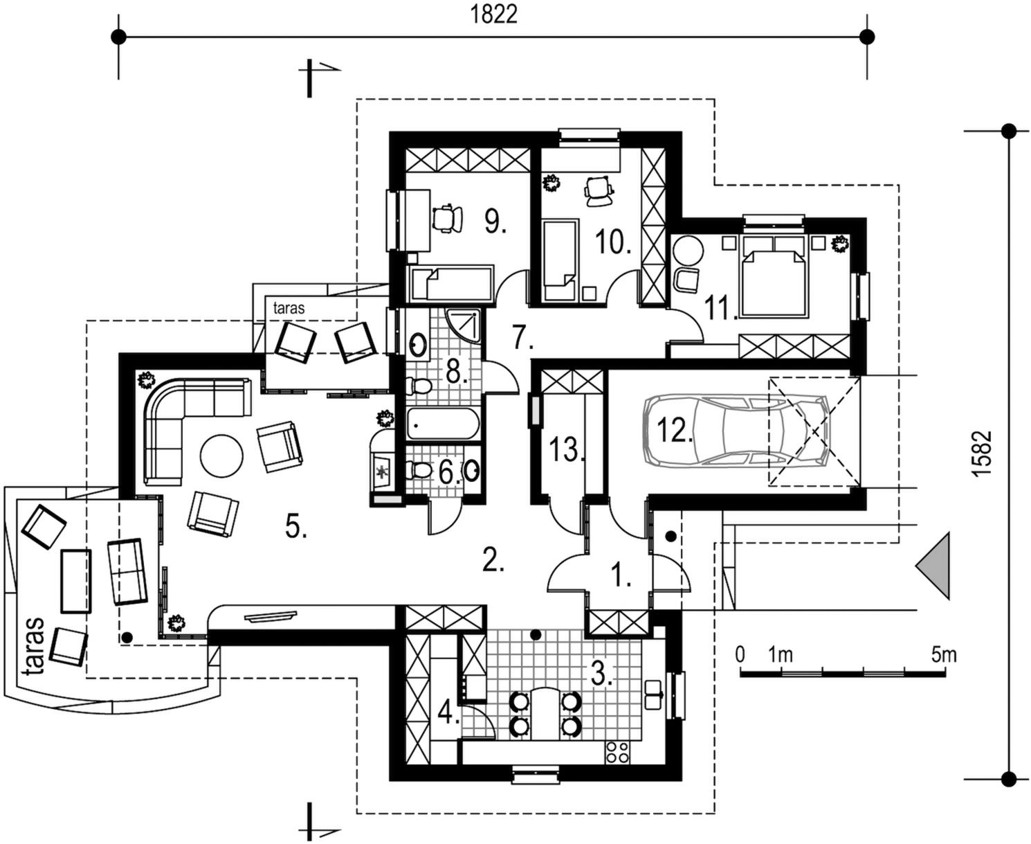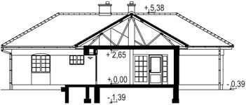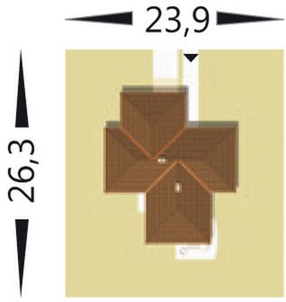 Graficzne opracowanie rzutów poglądowych widocznych na karcie projektu zostało wykonane przez Extradom.pl. Prezentowane przez Extradom.pl wizualizacje wykonane zostały przez autora projektu i należy poczytywać je jedynie za przykład i propozycję wykończenia, wizję architektoniczną autora projektu. Ostateczne wykończenie budynku może nastąpić na wiele sposobów. Szczegółowe rozwiązania zastosowane w oferowanej dokumentacji - w tym również ilość, lokalizacje i wygląd okien, drzwi, kominów - mogą w niewielkim stopniu różnić się od prezentowanej wizualizacji budynku.