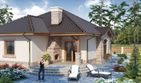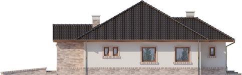 Graficzne opracowanie rzutów poglądowych widocznych na karcie projektu zostało wykonane przez Extradom.pl. Prezentowane przez Extradom.pl wizualizacje wykonane zostały przez autora projektu i należy poczytywać je jedynie za przykład i propozycję wykończenia, wizję architektoniczną autora projektu. Ostateczne wykończenie budynku może nastąpić na wiele sposobów. Szczegółowe rozwiązania zastosowane w oferowanej dokumentacji - w tym również ilość, lokalizacje i wygląd okien, drzwi, kominów - mogą w niewielkim stopniu różnić się od prezentowanej wizualizacji budynku.