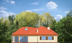 Graficzne opracowanie rzutów poglądowych widocznych na karcie projektu zostało wykonane przez Extradom.pl. Prezentowane przez Extradom.pl wizualizacje wykonane zostały przez autora projektu i należy poczytywać je jedynie za przykład i propozycję wykończenia, wizję architektoniczną autora projektu. Ostateczne wykończenie budynku może nastąpić na wiele sposobów. Szczegółowe rozwiązania zastosowane w oferowanej dokumentacji - w tym również ilość, lokalizacje i wygląd okien, drzwi, kominów - mogą w niewielkim stopniu różnić się od prezentowanej wizualizacji budynku.