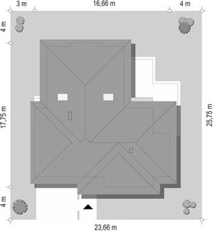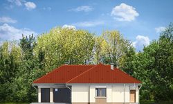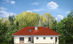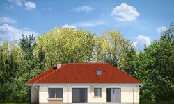 Graficzne opracowanie rzutów poglądowych widocznych na karcie projektu zostało wykonane przez Extradom.pl. Prezentowane przez Extradom.pl wizualizacje wykonane zostały przez autora projektu i należy poczytywać je jedynie za przykład i propozycję wykończenia, wizję architektoniczną autora projektu. Ostateczne wykończenie budynku może nastąpić na wiele sposobów. Szczegółowe rozwiązania zastosowane w oferowanej dokumentacji - w tym również ilość, lokalizacje i wygląd okien, drzwi, kominów - mogą w niewielkim stopniu różnić się od prezentowanej wizualizacji budynku.