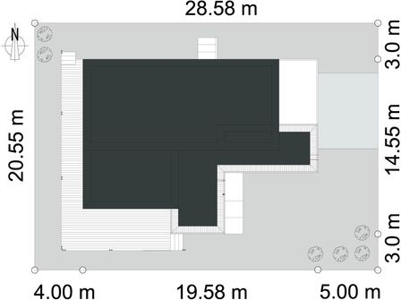 Graficzne opracowanie rzutów poglądowych widocznych na karcie projektu zostało wykonane przez Extradom.pl. Prezentowane przez Extradom.pl wizualizacje wykonane zostały przez autora projektu i należy poczytywać je jedynie za przykład i propozycję wykończenia, wizję architektoniczną autora projektu. Ostateczne wykończenie budynku może nastąpić na wiele sposobów. Szczegółowe rozwiązania zastosowane w oferowanej dokumentacji - w tym również ilość, lokalizacje i wygląd okien, drzwi, kominów - mogą w niewielkim stopniu różnić się od prezentowanej wizualizacji budynku.