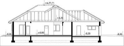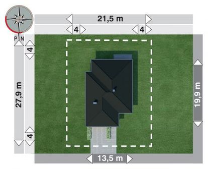 Graficzne opracowanie rzutów poglądowych widocznych na karcie projektu zostało wykonane przez Extradom.pl. Prezentowane przez Extradom.pl wizualizacje wykonane zostały przez autora projektu i należy poczytywać je jedynie za przykład i propozycję wykończenia, wizję architektoniczną autora projektu. Ostateczne wykończenie budynku może nastąpić na wiele sposobów. Szczegółowe rozwiązania zastosowane w oferowanej dokumentacji - w tym również ilość, lokalizacje i wygląd okien, drzwi, kominów - mogą w niewielkim stopniu różnić się od prezentowanej wizualizacji budynku.