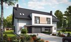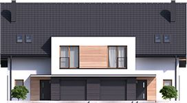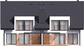Graficzne opracowanie rzutów poglądowych widocznych na karcie projektu zostało wykonane przez Extradom.pl. Prezentowane przez Extradom.pl wizualizacje wykonane zostały przez autora projektu i należy poczytywać je jedynie za przykład i propozycję wykończenia, wizję architektoniczną autora projektu. Ostateczne wykończenie budynku może nastąpić na wiele sposobów. Szczegółowe rozwiązania zastosowane w oferowanej dokumentacji - w tym również ilość, lokalizacje i wygląd okien, drzwi, kominów - mogą w niewielkim stopniu różnić się od prezentowanej wizualizacji budynku.