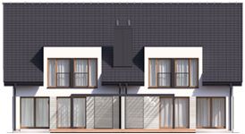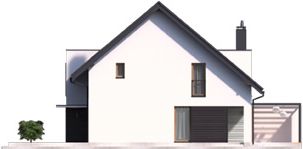 Graficzne opracowanie rzutów poglądowych widocznych na karcie projektu zostało wykonane przez Extradom.pl. Prezentowane przez Extradom.pl wizualizacje wykonane zostały przez autora projektu i należy poczytywać je jedynie za przykład i propozycję wykończenia, wizję architektoniczną autora projektu. Ostateczne wykończenie budynku może nastąpić na wiele sposobów. Szczegółowe rozwiązania zastosowane w oferowanej dokumentacji - w tym również ilość, lokalizacje i wygląd okien, drzwi, kominów - mogą w niewielkim stopniu różnić się od prezentowanej wizualizacji budynku.