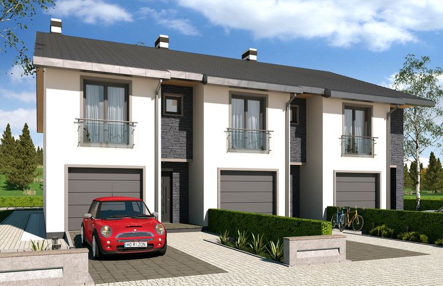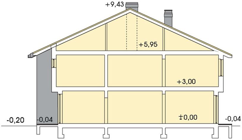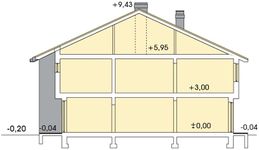 Graficzne opracowanie rzutów poglądowych widocznych na karcie projektu zostało wykonane przez Extradom.pl. Prezentowane przez Extradom.pl wizualizacje wykonane zostały przez autora projektu i należy poczytywać je jedynie za przykład i propozycję wykończenia, wizję architektoniczną autora projektu. Ostateczne wykończenie budynku może nastąpić na wiele sposobów. Szczegółowe rozwiązania zastosowane w oferowanej dokumentacji - w tym również ilość, lokalizacje i wygląd okien, drzwi, kominów - mogą w niewielkim stopniu różnić się od prezentowanej wizualizacji budynku.
