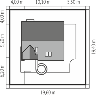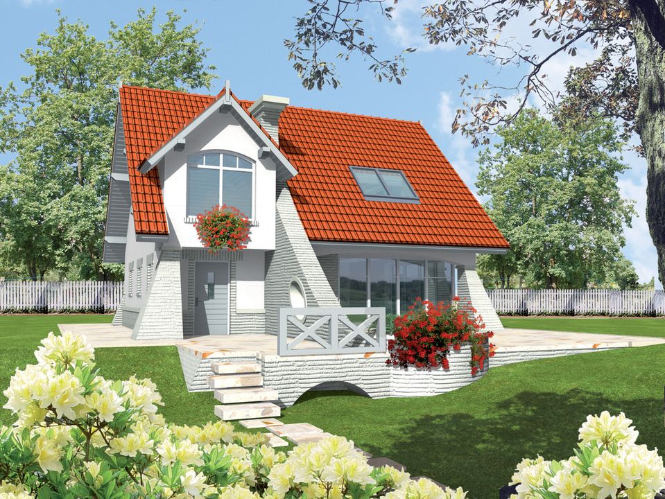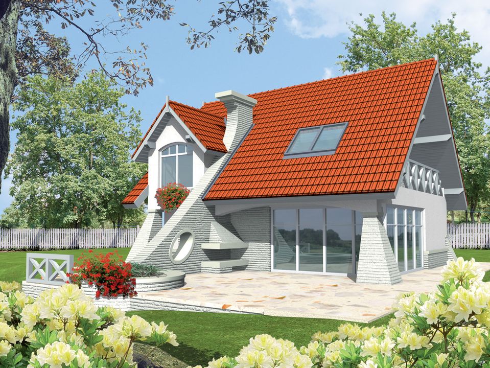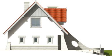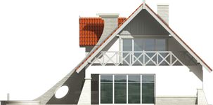 Graficzne opracowanie rzutów poglądowych widocznych na karcie projektu zostało wykonane przez Extradom.pl. Prezentowane przez Extradom.pl wizualizacje wykonane zostały przez autora projektu i należy poczytywać je jedynie za przykład i propozycję wykończenia, wizję architektoniczną autora projektu. Ostateczne wykończenie budynku może nastąpić na wiele sposobów. Szczegółowe rozwiązania zastosowane w oferowanej dokumentacji - w tym również ilość, lokalizacje i wygląd okien, drzwi, kominów - mogą w niewielkim stopniu różnić się od prezentowanej wizualizacji budynku.