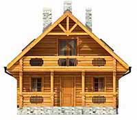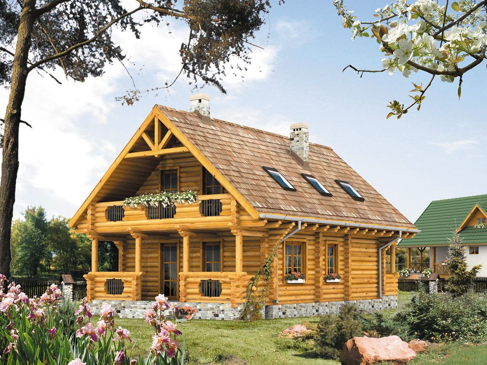 Ściany: z bali drewnianych. Stropy: belki drewniane. Dach: dachówka ceramiczna CREATON, kąt nachylenia 42°. Ogrzewanie: gazowe.
