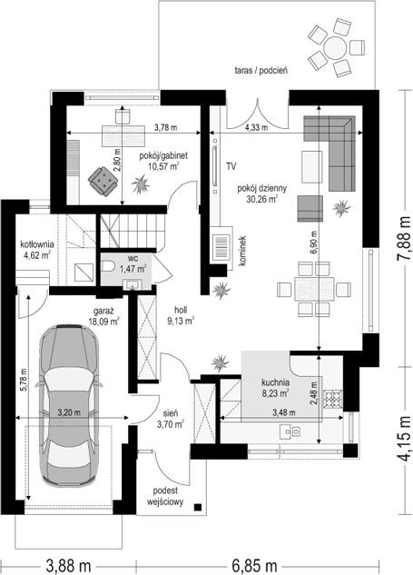 PROJEKT Z BUDOWĄ Istnieje możliwość zaadaptowania tego projektu do technologii prefabrykowanej/modułowej i budowy nawet w 6 miesięcy ze stałym kosztem budowy