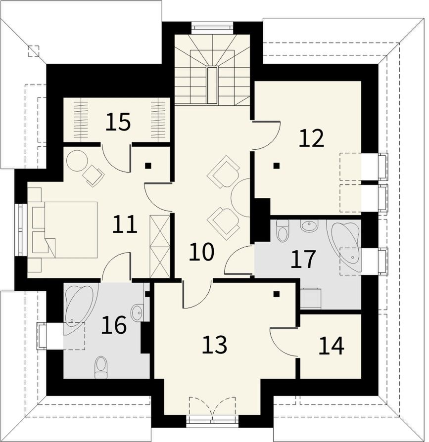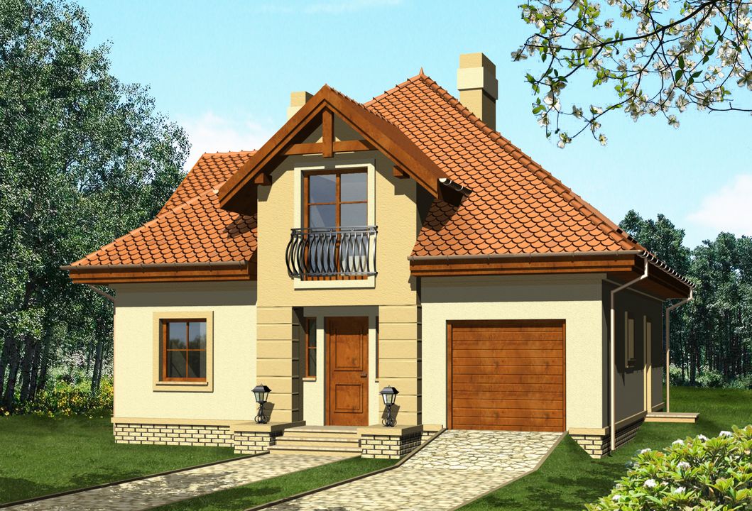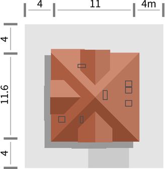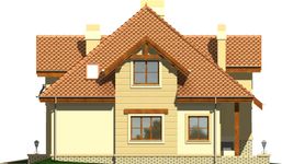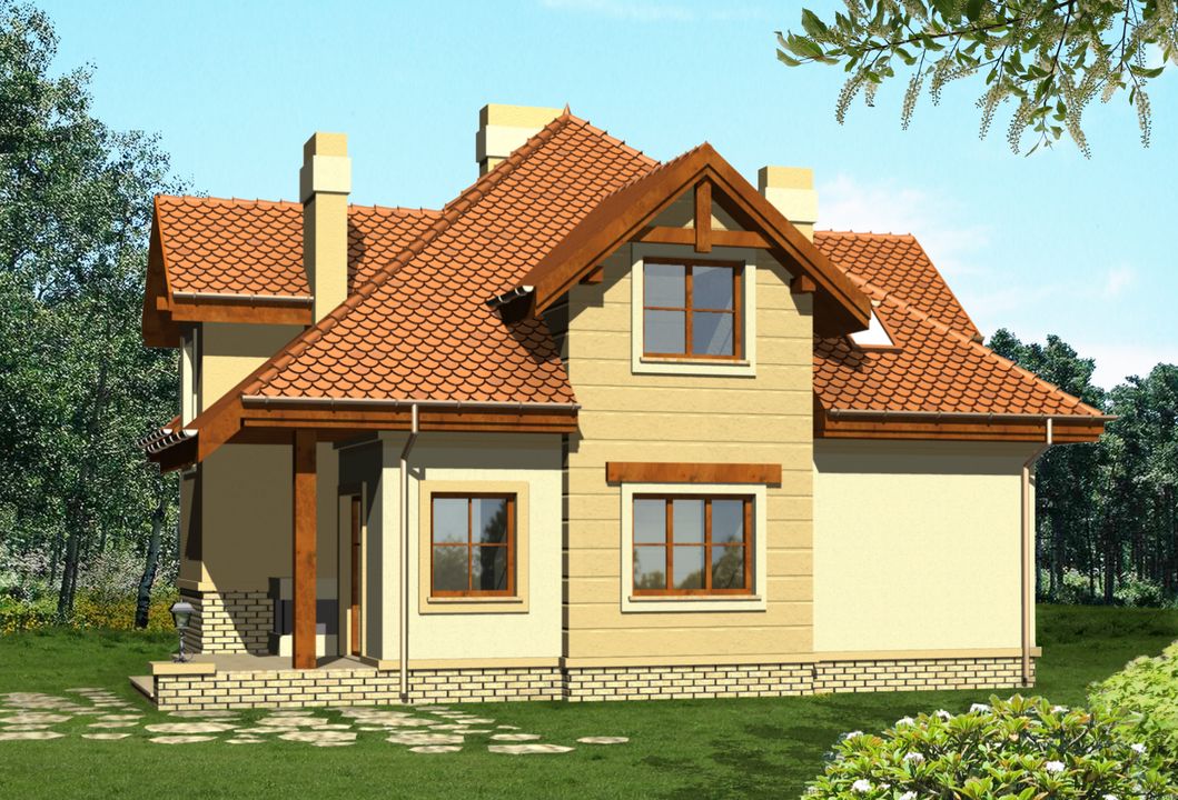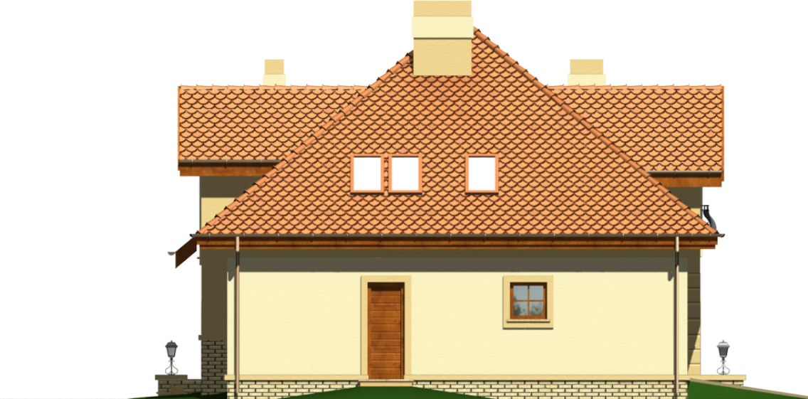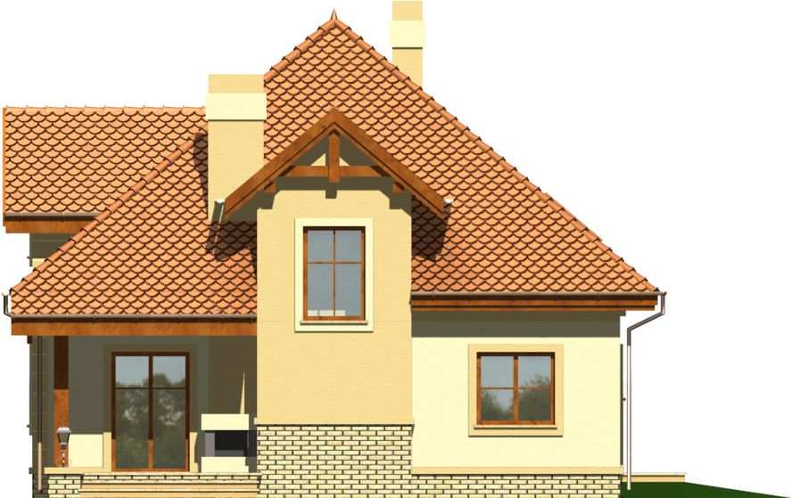 Graficzne opracowanie rzutów poglądowych widocznych na karcie projektu zostało wykonane przez Extradom.pl. Prezentowane przez Extradom.pl wizualizacje wykonane zostały przez autora projektu i należy poczytywać je jedynie za przykład i propozycję wykończenia, wizję architektoniczną autora projektu. Ostateczne wykończenie budynku może nastąpić na wiele sposobów. Szczegółowe rozwiązania zastosowane w oferowanej dokumentacji - w tym również ilość, lokalizacje i wygląd okien, drzwi, kominów - mogą w niewielkim stopniu różnić się od prezentowanej wizualizacji budynku.