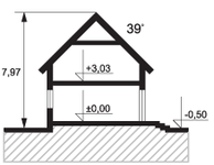Graficzne opracowanie rzutów poglądowych widocznych na karcie projektu zostało wykonane przez Extradom.pl. Prezentowane przez Extradom.pl wizualizacje wykonane zostały przez autora projektu i należy poczytywać je jedynie za przykład i propozycję wykończenia, wizję architektoniczną autora projektu. Ostateczne wykończenie budynku może nastąpić na wiele sposobów. Szczegółowe rozwiązania zastosowane w oferowanej dokumentacji - w tym również ilość, lokalizacje i wygląd okien, drzwi, kominów - mogą w niewielkim stopniu różnić się od prezentowanej wizualizacji budynku.