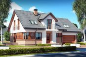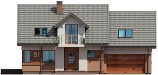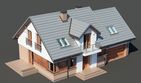 Graficzne opracowanie rzutów poglądowych widocznych na karcie projektu zostało wykonane przez Extradom.pl. Prezentowane przez Extradom.pl wizualizacje wykonane zostały przez autora projektu i należy poczytywać je jedynie za przykład i propozycję wykończenia, wizję architektoniczną autora projektu. Ostateczne wykończenie budynku może nastąpić na wiele sposobów. Szczegółowe rozwiązania zastosowane w oferowanej dokumentacji - w tym również ilość, lokalizacje i wygląd okien, drzwi, kominów - mogą w niewielkim stopniu różnić się od prezentowanej wizualizacji budynku.