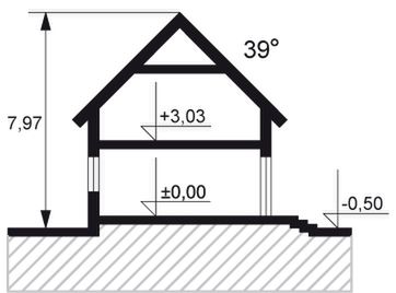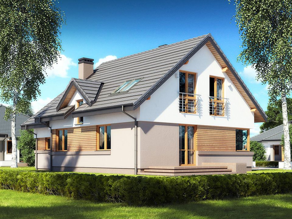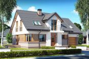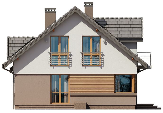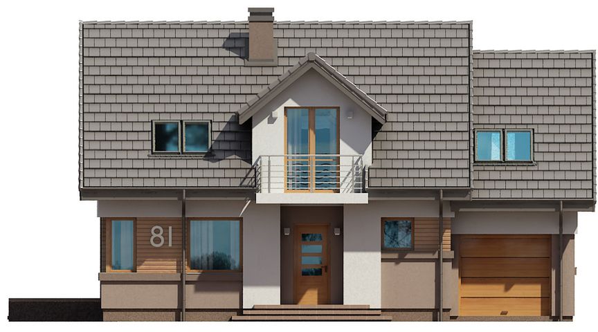 Graficzne opracowanie rzutów poglądowych widocznych na karcie projektu zostało wykonane przez Extradom.pl. Prezentowane przez Extradom.pl wizualizacje wykonane zostały przez autora projektu i należy poczytywać je jedynie za przykład i propozycję wykończenia, wizję architektoniczną autora projektu. Ostateczne wykończenie budynku może nastąpić na wiele sposobów. Szczegółowe rozwiązania zastosowane w oferowanej dokumentacji - w tym również ilość, lokalizacje i wygląd okien, drzwi, kominów - mogą w niewielkim stopniu różnić się od prezentowanej wizualizacji budynku.