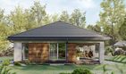 Graficzne opracowanie rzutów poglądowych widocznych na karcie projektu zostało wykonane przez Extradom.pl. Prezentowane przez Extradom.pl wizualizacje wykonane zostały przez autora projektu i należy poczytywać je jedynie za przykład i propozycję wykończenia, wizję architektoniczną autora projektu. Ostateczne wykończenie budynku może nastąpić na wiele sposobów. Szczegółowe rozwiązania zastosowane w oferowanej dokumentacji - w tym również ilość, lokalizacje i wygląd okien, drzwi, kominów - mogą w niewielkim stopniu różnić się od prezentowanej wizualizacji budynku.