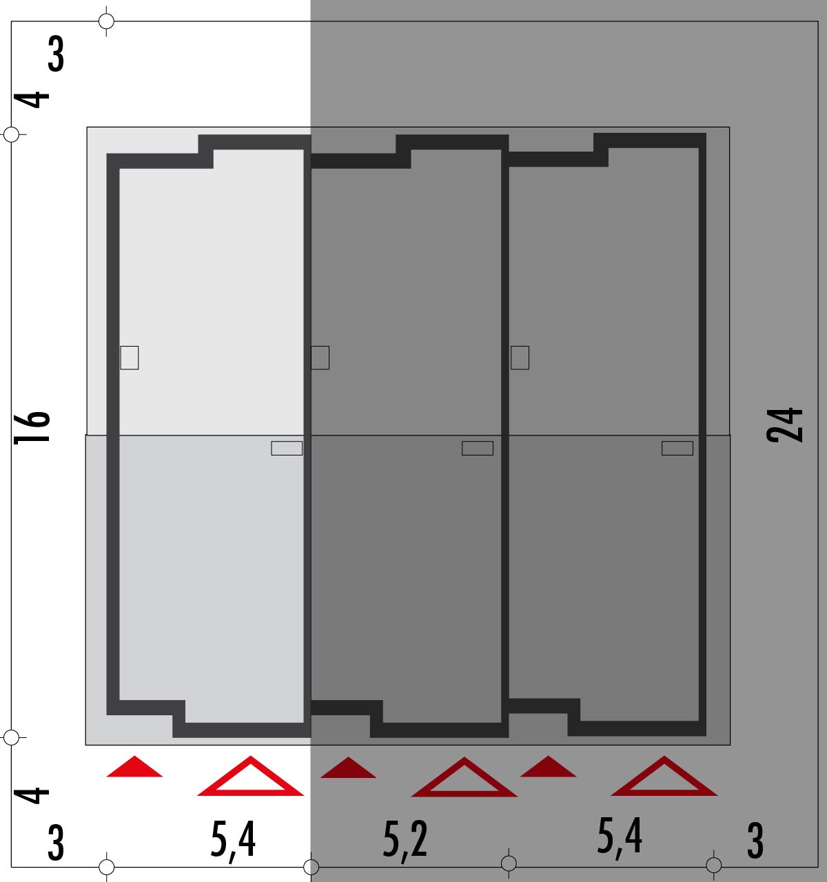 Strop: żelbetowy. Ściany zewnętrzne: bloczki silikatowe 24/18cm + styropian 16cm. Pokrycie dachowe: dachówka ceramiczna. Okna połaciowe: Fakro.