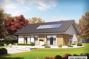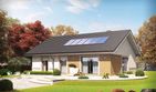 Graficzne opracowanie rzutów poglądowych widocznych na karcie projektu zostało wykonane przez Extradom.pl. Prezentowane przez Extradom.pl wizualizacje wykonane zostały przez autora projektu i należy poczytywać je jedynie za przykład i propozycję wykończenia, wizję architektoniczną autora projektu. Ostateczne wykończenie budynku może nastąpić na wiele sposobów. Szczegółowe rozwiązania zastosowane w oferowanej dokumentacji - w tym również ilość, lokalizacje i wygląd okien, drzwi, kominów - mogą w niewielkim stopniu różnić się od prezentowanej wizualizacji budynku.