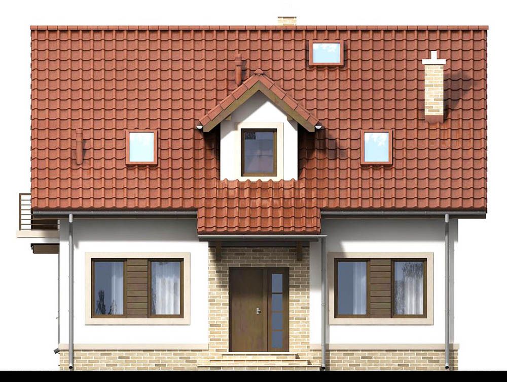 Graficzne opracowanie rzutów poglądowych widocznych na karcie projektu zostało wykonane przez Extradom.pl. Prezentowane przez Extradom.pl wizualizacje wykonane zostały przez autora projektu i należy poczytywać je jedynie za przykład i propozycję wykończenia, wizję architektoniczną autora projektu. Ostateczne wykończenie budynku może nastąpić na wiele sposobów. Szczegółowe rozwiązania zastosowane w oferowanej dokumentacji - w tym również ilość, lokalizacje i wygląd okien, drzwi, kominów - mogą w niewielkim stopniu różnić się od prezentowanej wizualizacji budynku.