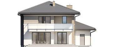 Graficzne opracowanie rzutów poglądowych widocznych na karcie projektu zostało wykonane przez Extradom.pl. Prezentowane przez Extradom.pl wizualizacje wykonane zostały przez autora projektu i należy poczytywać je jedynie za przykład i propozycję wykończenia, wizję architektoniczną autora projektu. Ostateczne wykończenie budynku może nastąpić na wiele sposobów. Szczegółowe rozwiązania zastosowane w oferowanej dokumentacji - w tym również ilość, lokalizacje i wygląd okien, drzwi, kominów - mogą w niewielkim stopniu różnić się od prezentowanej wizualizacji budynku.