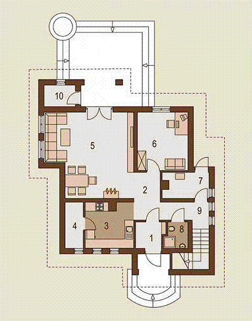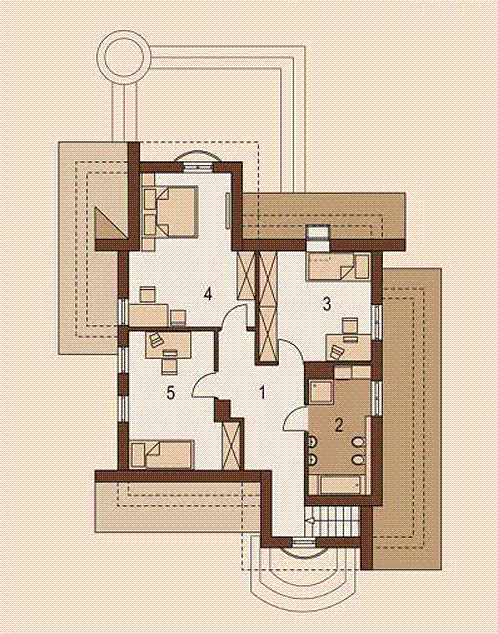 Graficzne opracowanie rzutów poglądowych widocznych na karcie projektu zostało wykonane przez Extradom.pl. Prezentowane przez Extradom.pl wizualizacje wykonane zostały przez autora projektu i należy poczytywać je jedynie za przykład i propozycję wykończenia, wizję architektoniczną autora projektu. Ostateczne wykończenie budynku może nastąpić na wiele sposobów. Szczegółowe rozwiązania zastosowane w oferowanej dokumentacji - w tym również ilość, lokalizacje i wygląd okien, drzwi, kominów - mogą w niewielkim stopniu różnić się od prezentowanej wizualizacji budynku.