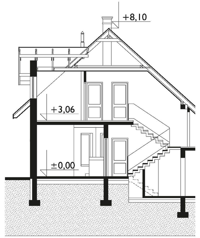Technologia i konstrukcja: murowana – beton komórkowy. Ściany zewnętrzne: bloczki YTONG gr. 36,5 cm. Ściany wewnętrzne: bloczki SILKA E gr. 24, 12 cm. Strop: żelbetowy. Konstrukcja dachu: drewniana, jętkowa. Rodzaj schodów: metalowo - drewniane lub żelbetowe z "obkładką" drewnianą i balustradami. Typ ogrzewania: kocioł na gaz. Aneks na paliwo stałe: dostępny (zapytaj o cenę). Pokrycie dachu: blacha dachówkowa. Elewacja: cienkowarstwowy tynk strukturalny.