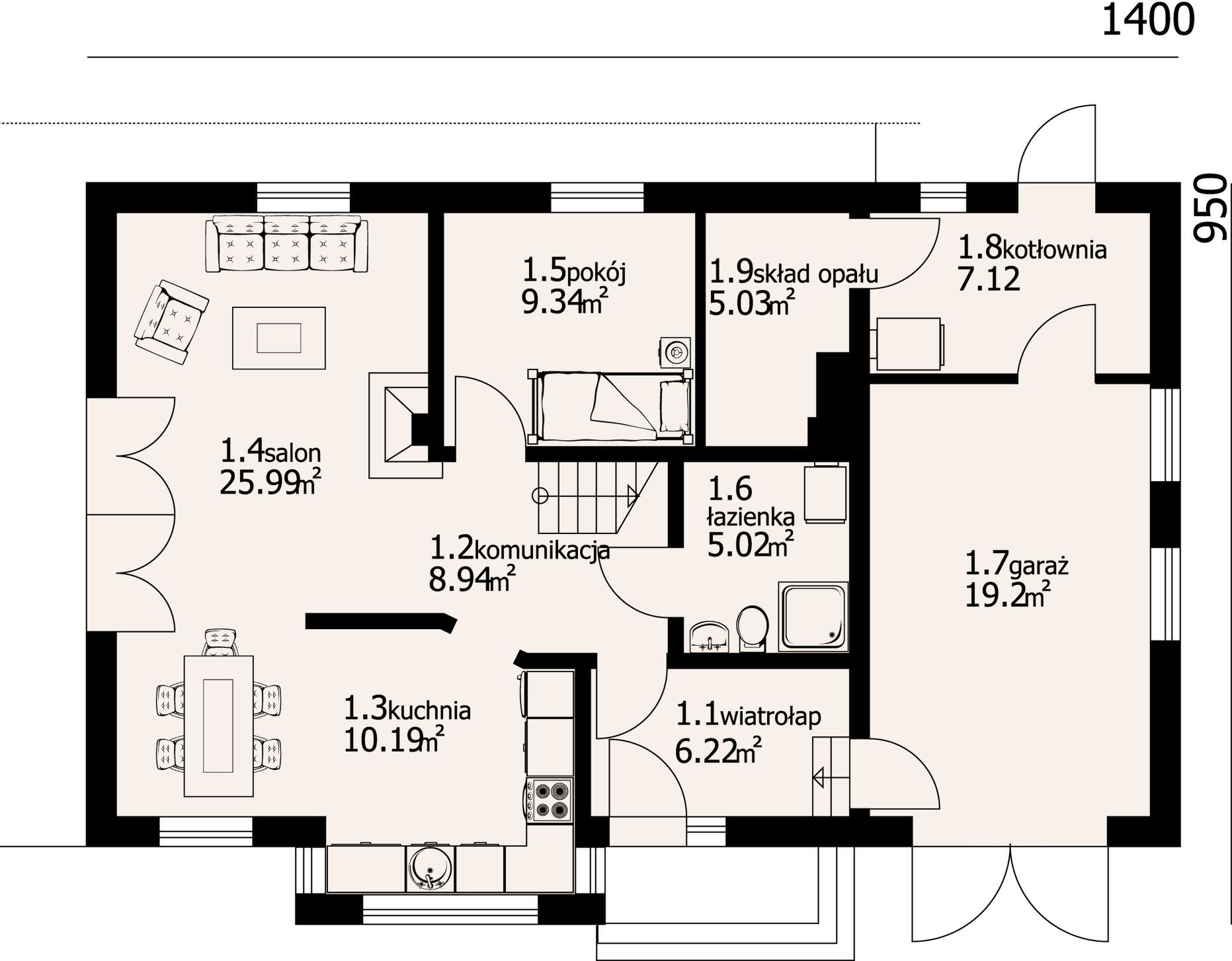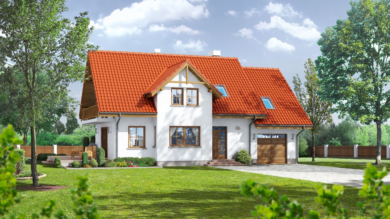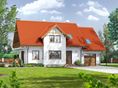 Wybierając projekt domu zwracaliśmy uwagę na funkcjonalność układu pomieszczeń oraz ich rozmieszczenie względem stron świata w przypadku naszej działki, gdyż przy jej usytuowaniu wejście do domu musiało znajdować się na południu. Projekt domu Koźmice KRP1282 odpowiadał naszym wymaganiom pod tym kątem, a w dodatku uwzględniono w nim dużą liczbę sypialni, która była potrzebna naszej rodzinie.Wprowadziłem zmianę w technologi budowy i do wymurowania ścian zamiast pustaków ceramicznych użyłem bloczków gazobetonowych. Dach wyłożyliśmy dachówką ceramiczną wedle zaleceń projektanta. Pozostałe materiały wykorzystane do postawienia naszego domu również były zgodne z wytycznymi, a cała realizacja odbyła się bez żadnych problemów. Jedyną rzeczą, na którą warto zwrócić uwagę, jest konstrukcja dachu. Fachowcy zgodnie stwierdzili, że jest ona zbyt przesadzona i byli nieco zdziwieni wymiarami przekrojów oraz dużą ilością grubych belek, które uwzględniono w więźbie. My zrobiliśmy ją adekwatnie z projektem, jednak można zrobić to prościej i zarazem oszczędniej. Na całym parterze zastosowaliśmy ogrzewanie podłogowe, a na poddaszu mamy kaloryfery. Zdecydowaliśmy się zainstalować w kotłowni piec na paliwo stałe i palimy w nim pelletem. Mamy za sobą dopiero pierwszy sezon grzewczy. Na chwilę obecną trudno określić stałe koszty takiego ogrzewania, ze względu na to iż był to okres dopasowywania całego systemu grzewczego. Szacuję jednak, iż w trakcie zimy zużyliśmy ok. 4,5-5m3 opału.W celu jak najlepszego dopasowania układu pomieszczeń względem stron świata, postanowiliśmy wprowadzić jedną zmianę w projekcie domu Koźmice KRP1282. Kuchnię, która początkowo miała znajdować się od frontu domu, przenieśliśmy do pokoju na przeciw niej i teraz jest ona zlokalizowana po stronie północnej. Jej powierzchnię przyłączyliśmy do salonu, który dzięki temu usytuowany jest na południu i zachodzie. Z racji tego, iż zrezygnowaliśmy ze ścianki między kuchnią a strefą wypoczynkową, kierownik budowy zmodyfikował nieco konstrukcję stropu.W naszym nowym domu mieszkamy w piątkę i na takim metrażu żyje nam się bardzo wygodnie. Myślę, że przy tej ilości sypialni, większej rodzinie byłoby równie komfortowo, zwłaszcza przy pozostawieniu pokoju na parterze. Wybór projektu domu parterowego z poddaszem użytkowym Koźmice KRP1282 był w naszym przypadku jak najbardziej trafiony. Polecam i pozdrawiam.